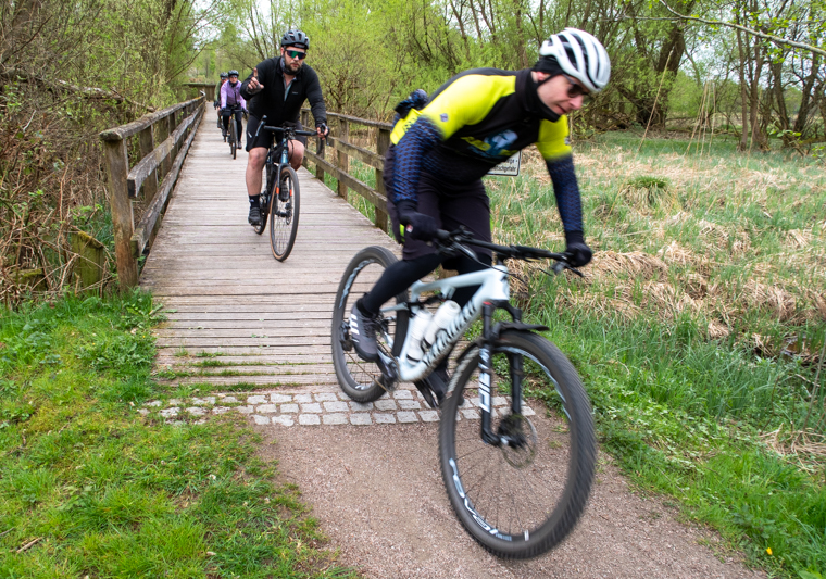 Die Hälfte der Tour war geschafft und frisch gestärkt ging es auf die zweite Hälfte. Über die Holzbrücken im Auetal ging es Richtung Ruschwedel und Neukloster. Kurz vor einigen schönen Trails wurde kurz Halt gemacht und Marcel schlug vor, dass diejenigen, die ballern wollen vorfahren und der Rest dann einfach hinterherfährt. Am Ende des Trails wurde dann wieder auf alle Fahrer gewartet. Das lief super.