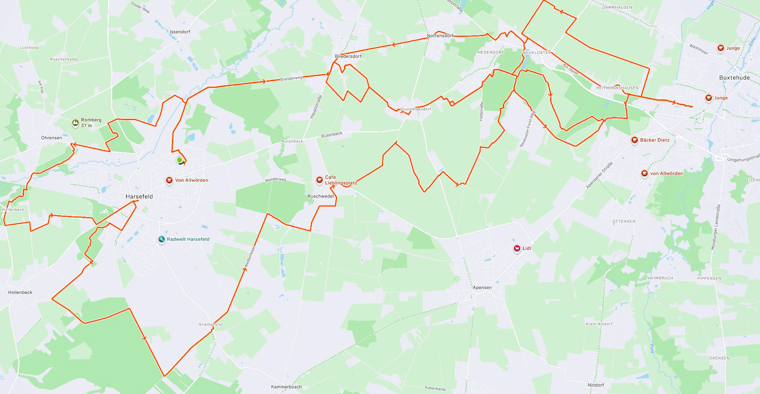 Die Runde sollte 51km betragen und führte uns grob über den Neukloster Forst nach Harsefeld und wieder zurück nach Buxtehude.