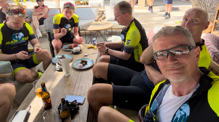 Zurück am Hotel war ich dann völlig fix und alle. Glücklicherweise wartete Petra, die Frau von Knud, immer mit Getränken auf uns im Ziel. Auf meinen Hinweis zu Michi, was das für ein Brett war, entgegnete er nur: „Und das war noch die einfachste Strecke.“ Na bravo :-/