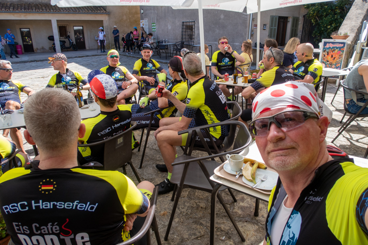 Das Fahren in der „Gänseblümchenpflückergruppe“ war zu Anfang etwas holprig. Die Gruppe riss hier und da auseinander und es dauerte zu lange, bis alle wieder zusammen waren. Das war besonders für den letzten Fahrer immer ein Problem, da er alleine gegen den Wind zur Gruppe wieder auffahren musste und dann bei der Zusammenführung noch kaputter war als vorher. Das wurde dann aber in Arta geklärt und lief von da an nahezu perfekt.