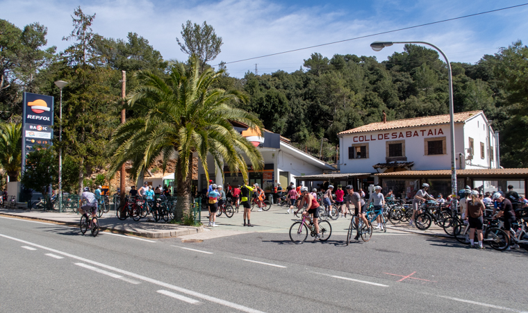 Die Tankstelle war ein Nest voll von Rennradfahrern. Hier konnte man sich erfrischen und sich noch entscheiden, ob man die Abfahrt MA-10 nach Pollenca oder nach den Abstecher nach Sa Calobra nimmt.